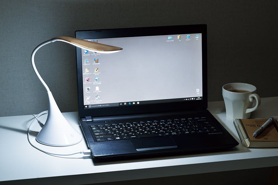 多段式調光でお好きな明るさでお使いいただけます。フレキシブルネックを自在に曲げて位置調整。タッチ式スイッチを採用しています。高輝度・白色・最大約140ルーメン。ライトを垂直に伸ばした最大値:約105×115×470mm(約100g(ケーブルを除く))