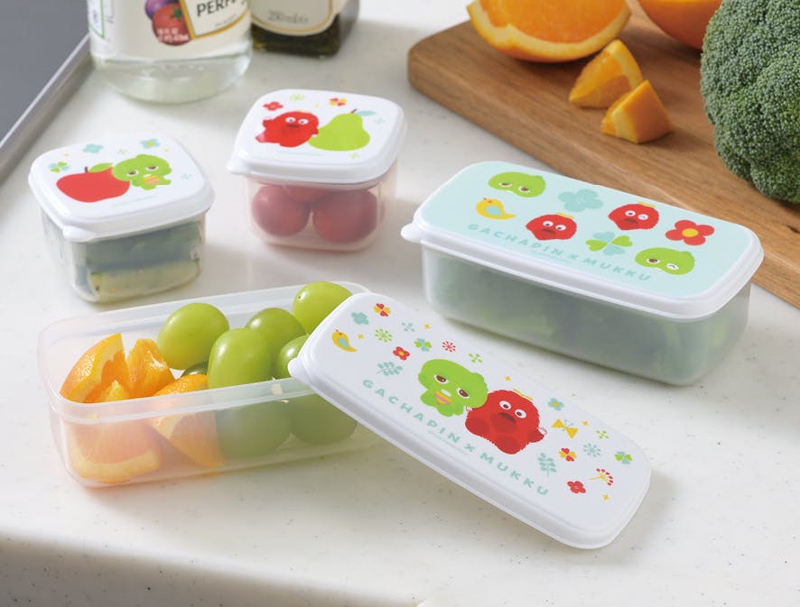 ガチャピン・ムックが北欧風のテイストに。草花や瑞々しいフルーツなどナチュラルなモチーフを取り入れたとってもキュートなテーブルウェアシリーズ。ピッタリ密閉されるタイプのシール蓋なので、水分があるものもこぼれにくいです。薬味やおかずの取り分け、お弁当のデザート入れなどに。