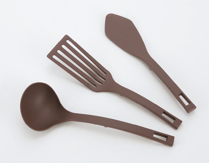 洗いやすく衛生的なナイロン製。お鍋の内面加工を傷つけにくい樹脂製。約260×88×57mm(約40g)