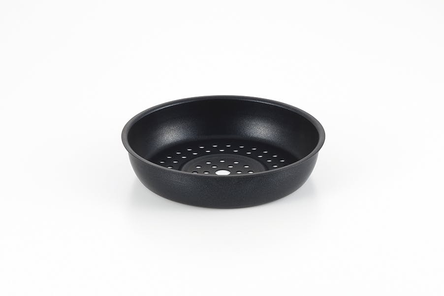 本体:アルミニウム合金、底部:ステンレス鋼(クロム16%)、底の厚さ2.5mm(貼り底を含む)、フタ:強化ガラス、目皿:アルミニウム合金、取っ手・つまみ:フェノール樹脂、表面加工/内側・目皿:フッ素樹脂塗膜加工、外面:焼付け塗装 中国製