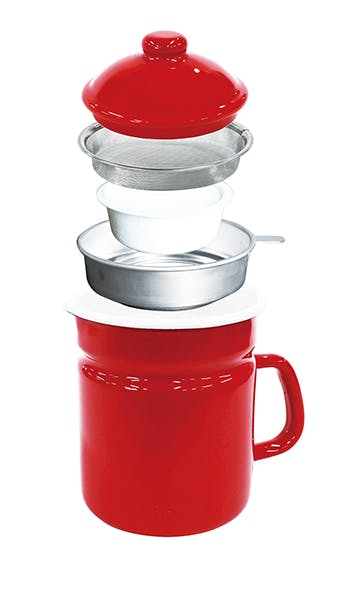 本体・蓋:ホーロー用鋼板(ホーロー加工)0.6mm、こしアミ:ステンレス鋼(35メッシュ)、カートリッジ外枠:ステンレス鋼 中国製