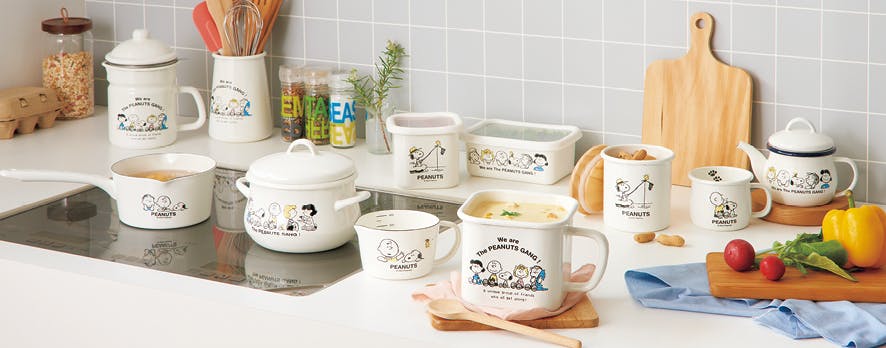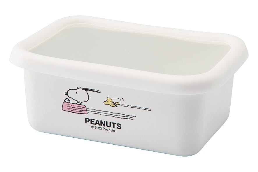 ゆったりとくつろぎムードで和やかな表情をしたスヌーピー&ピーナッツの仲間たち。穏やかな色調で統一されています。ほうろうは酸に強くてにおい移りの心配が少ないので、常備食の保存にも最適です。角型タイプなので積み重ねたり、横に並べたときもムダなすき間ができにくく収納スペースを有効に使えます。