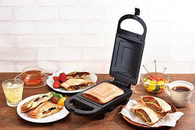 食パンの耳まで焼けるため、パンを切る手間がいりません。本体スイッチ付で安心ON/OFFしやすい。4枚切・6枚切・8枚切食パンに対応。約145×300×105mm(1300g)