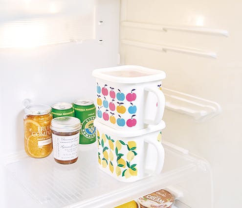 保存容器としてだけでなく、保存したお料理をそのまま加熱して食卓に出すこともできる機能的なアイテム。スープストックや味噌ポットとしても。取っ手付きなので冷蔵庫から取り出しやすい。新潟県燕市でひとつひとつ絵柄を丁寧に手で貼り、仕上げているホーローです。