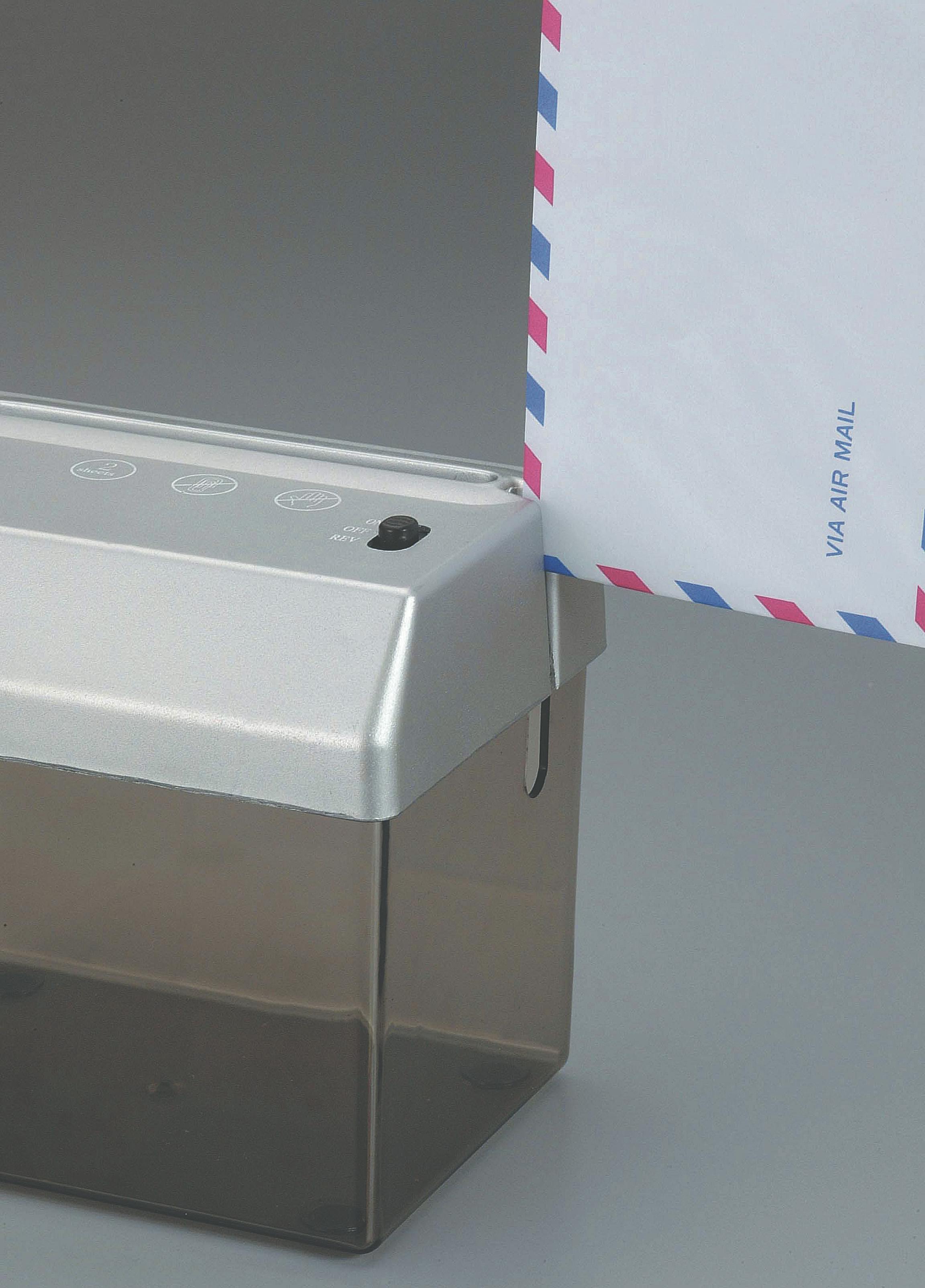 サイドにレターオープナー機能がついたミニシュレッダーです。普通はがき1枚、コピー用紙2枚の厚さまで裁断可能。