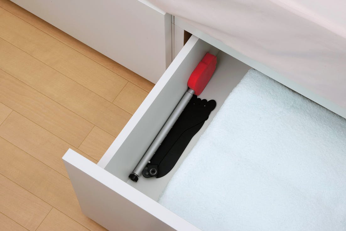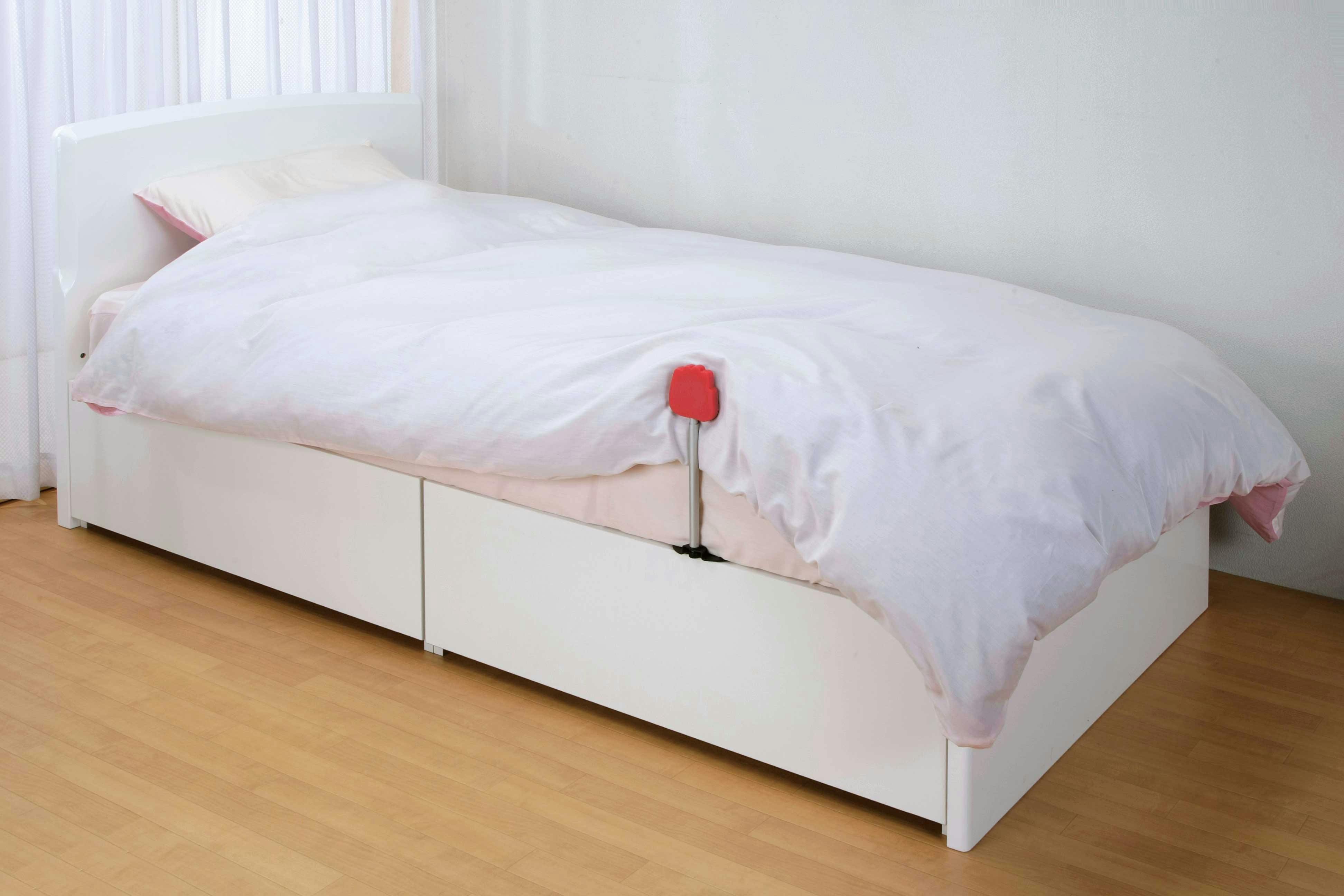 夜、掛け布団が落ちてお困りの方に最適です。足と手のデザインで小さいですがズレ落ちそうになる布団を受け止めます。寝具に合わせて高さが調節ができます。