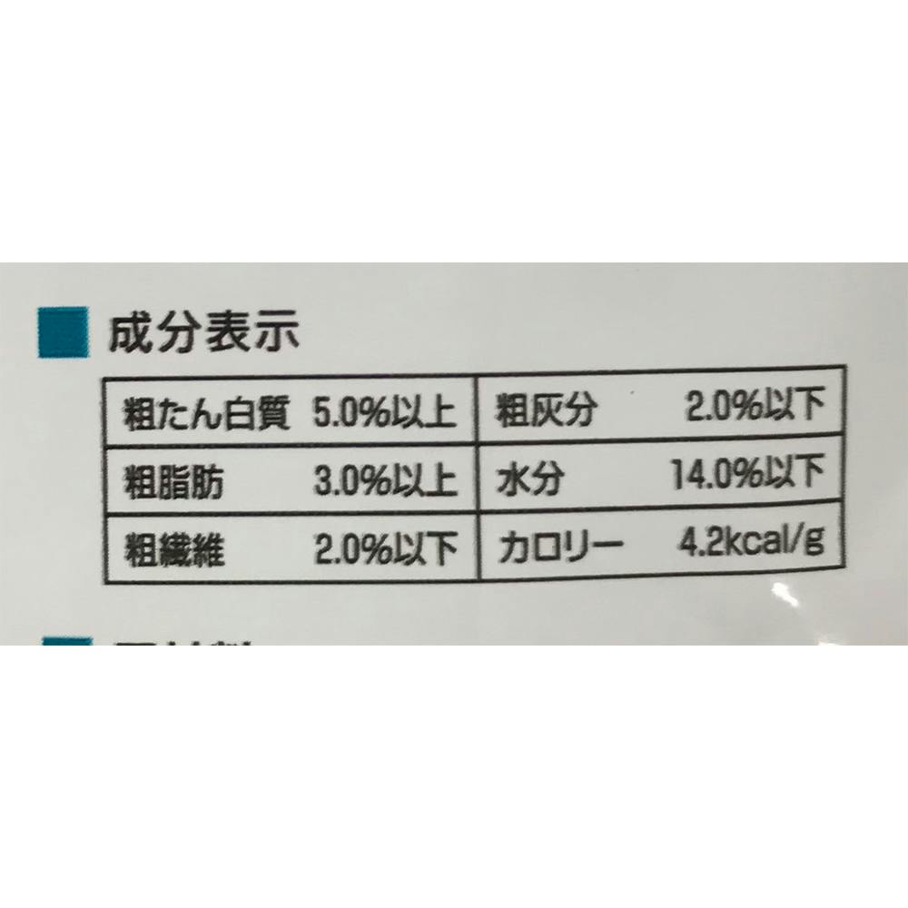 コーンスターチ、マルチトール、イソマルトオリゴ糖、グリセリン、卵パウダー、玄米、オートミール、ゼラチン、硬化油、食物繊維、亜麻仁粉末、CMC-Na、グリセリドなど