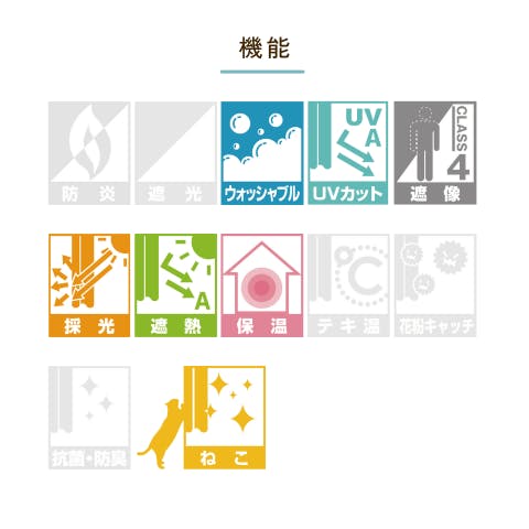 ◆機能:ウォッシャブル、UVカットA、遮像4、採光、遮熱A、保温、ねこに優しい、形態安定加工、ヨコ使い◆縫製仕様:2倍ヒダ(3つ山)