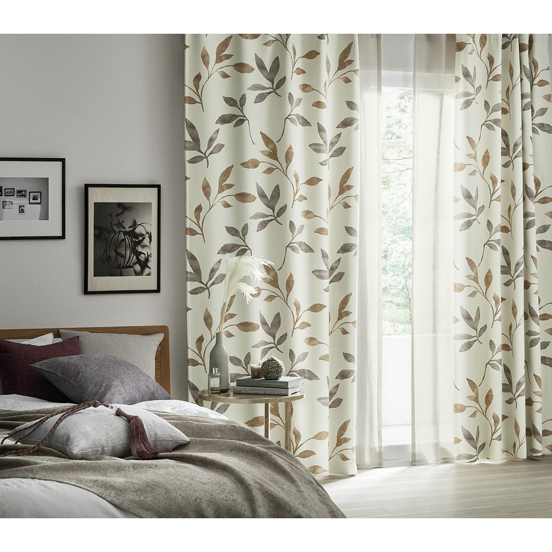 Eco de Happiness 【2級遮光/テキ温】 (ブラウン) 200cm×182cm 幅100×2枚組 ドレープカーテン 防炎 遮光 ウォッシャブル 洗える 断熱 リーフ柄 和室に合う 形態安定加工 KZE9412-200182【別送品】