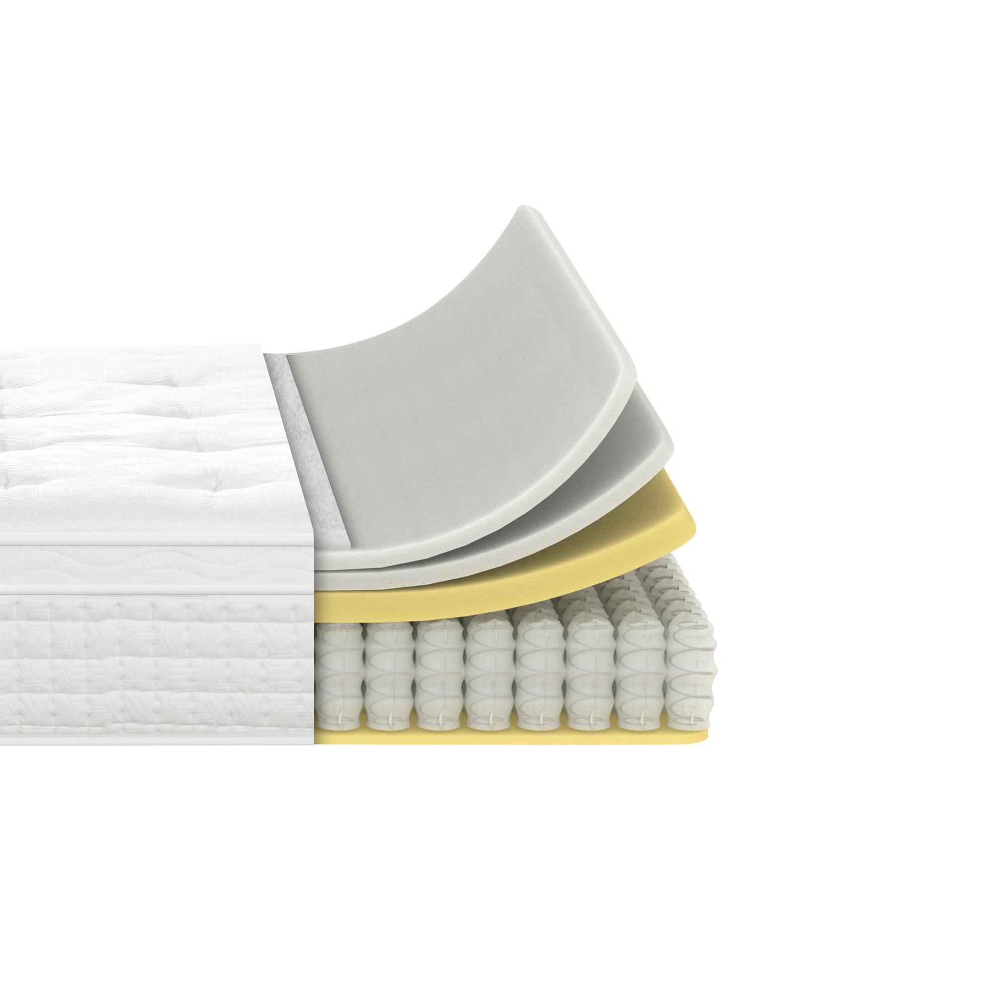 ・Euro Top Look仕様 ・5.5インチ高耐久コイル(シングル364個、セミダブル448個、ダブル532個を使用。線径2.2mm)・ハイブリッド(ポケットコイル&高密度フォーム) ・クッション&ジャカード生地
