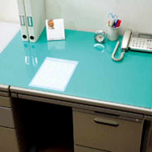 デスクワークを快適にするデスクマットです。書類を挟んで机の上を有効活用することができます。アドレス表と下敷きが付いています。文字が写りにくくなっています(両面無移行)。 ●適合机サイズ(約):1000×600mm