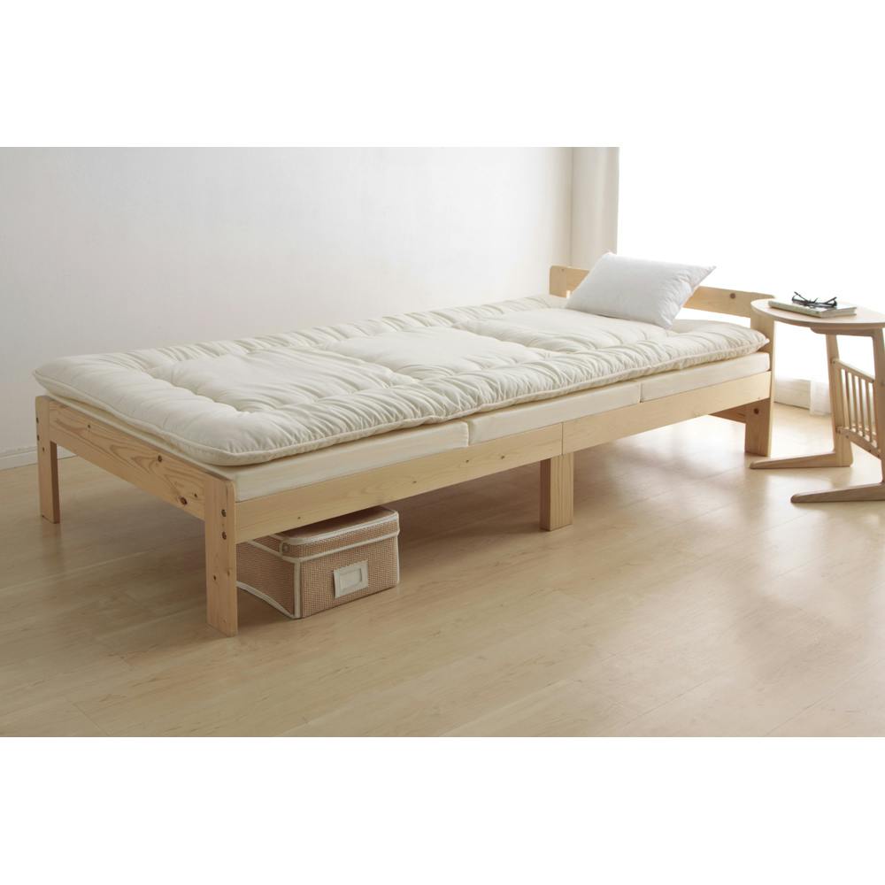 身体の沈み込みが少ないかためのマットレスです。厚さ約6cmのボリュームタイプでしっかりとしたかたさで身体を支え、心地よい眠りをサポートします。かためのマットレスを使用することにより、背中や腰にかかる負担を軽減します。布団の下で使用することで、断熱性アップと床付き感を軽減します。三つ折りタイプで、使用しない時はコンパクトに折りたたんで収納することができます。立てかけて陰干しができるので、湿気対策も簡単に行えます。