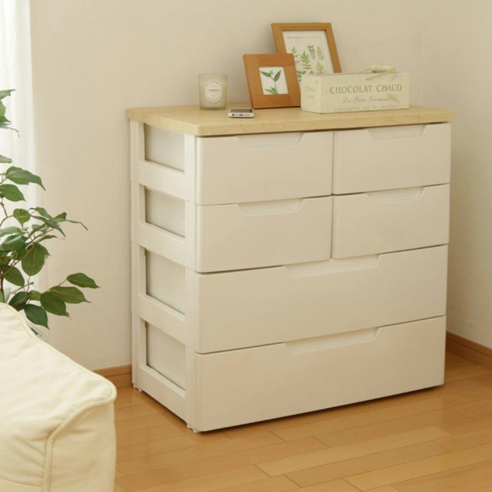 組み立ての要らない、小引出し4個タイプのチェストです。小さい引出しには小物、大きい引出しには衣類など 1つのチェストで様々なものを収納できます。金属スライドレールを採用しているので、引出しの開閉がラクラクです。 ●耐荷重(約):全体30kg、天板10kg、引出(小)1個あたり2kg、(大)1段あたり6kg ●引出内寸(約):(小)285×360×130mm、(大)645×360×145mm