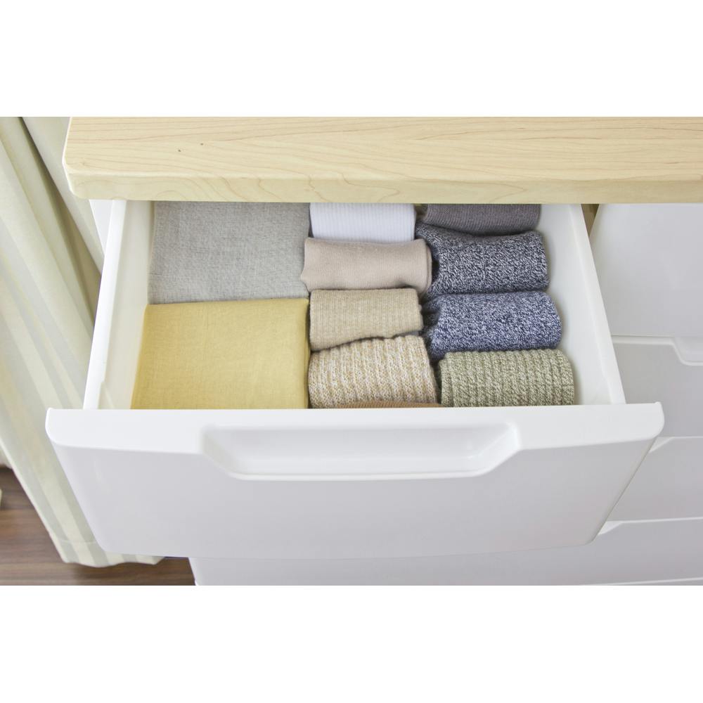 ◇素材:天板:合成樹脂化粧繊維板(塩化ビニル樹脂・MDF)、引出・フレーム:ポリプロピレン、前パネル:スチロール樹脂、レール:スチール ◇生産国:日本
