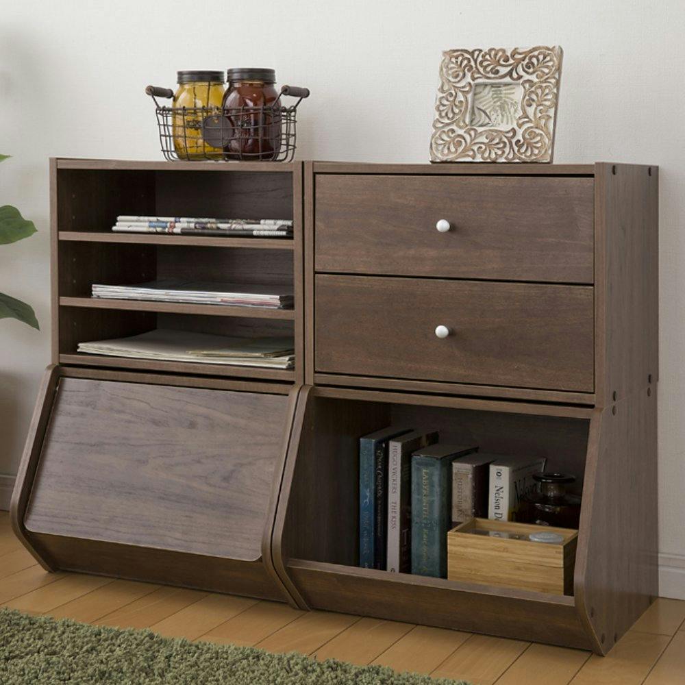 ベーシックなカラーでモダンなお部屋を演出してくれる棚付きのスタックボックスです。連結ピンをさすことで、積み重ねて使用することが可能です。棚にはA4サイズが横置きでき、書類の整理に便利です。 ●耐荷重(約):全体28kg、天板10kg、棚板1枚あたり4kg ●棚サイズ(約):375×267mm ●棚板枚数:可動2枚 ●積み重ね可能数:3段まで