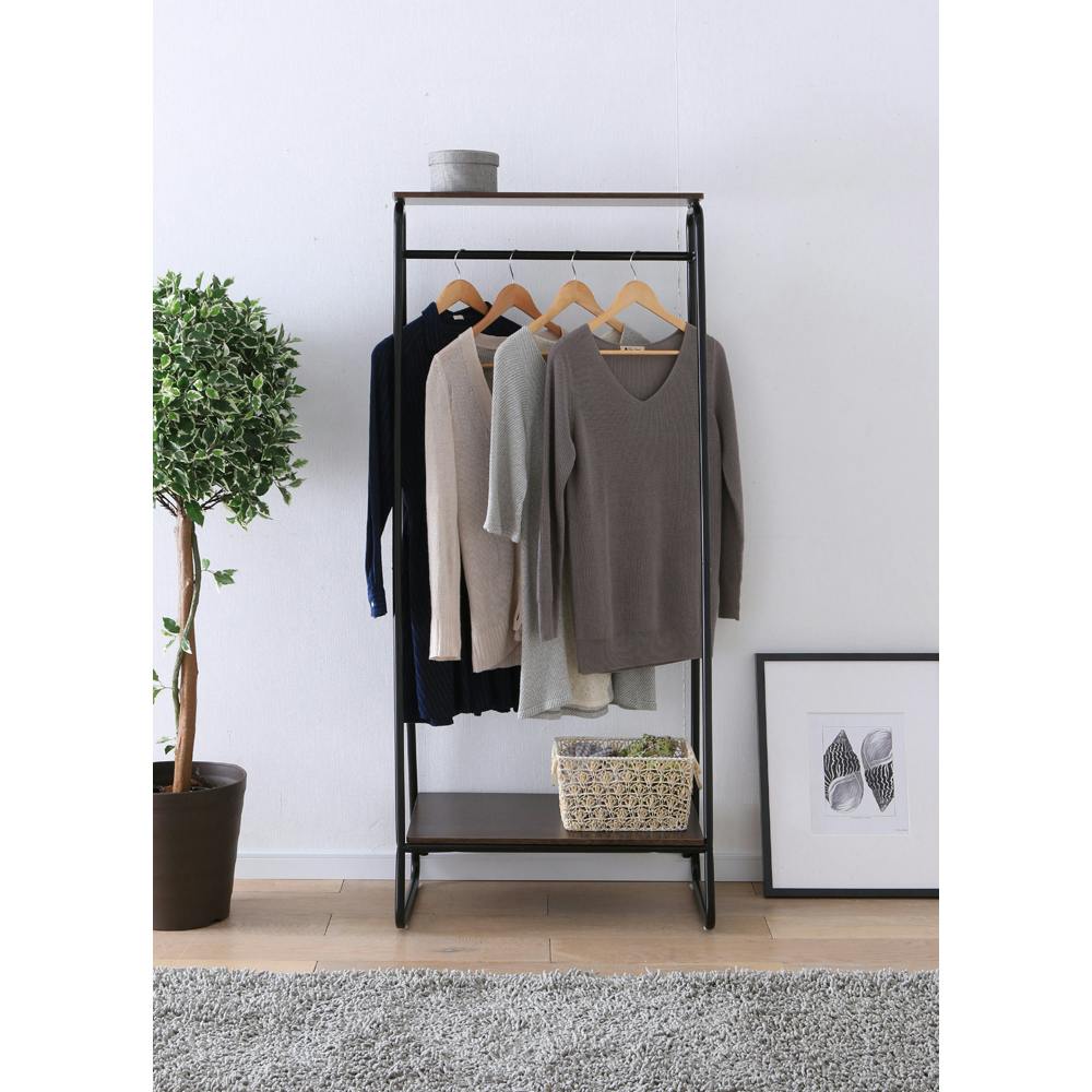 掛ける×置けるを兼ね備えたスタイルハンガーです。便利な2WAY収納です。ハンガーには衣類をかけて収納し、ボードには帽子やカバンなどのファッション小物の収納にお使いいただけます。ボード下は収納スペースとしても活用できます。高さも十分にありお掃除もラクにできます。お客様組み立てとなります。