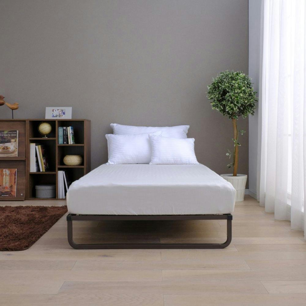 シンプルでスタイリッシュなベーシックタイプのフレームベッドです。ベッドの床面は、通気性がよいメッシュ素材のため、湿気がたまりやすい場所の通気性を確保します。荷重がかかる中心部分は、2本のフレームと脚でしっかり体重を支えます。ベッド下には、薄型の収納BOXを活用できます。 ●最大適合マットレスサイズ(約):970×2000mm ●ベッド下高さ(約):175mm ●最大使用者体重(約):120kg