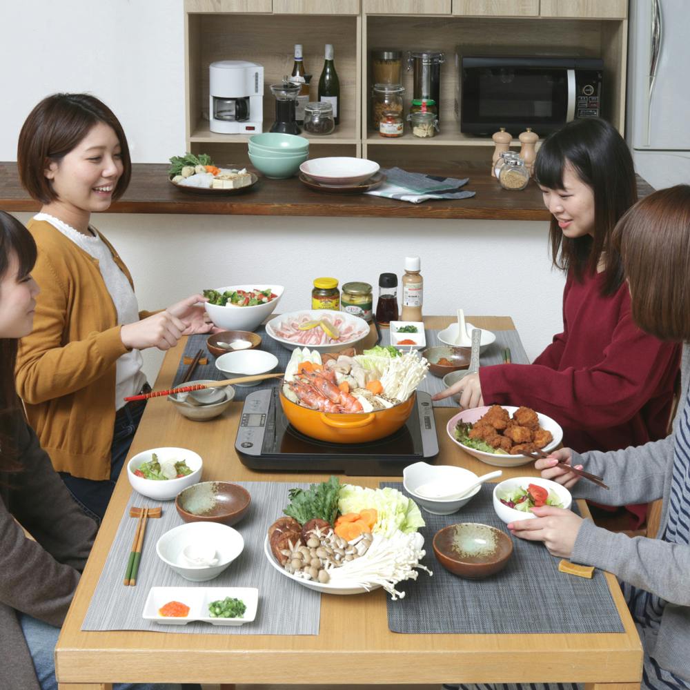 ●5つの安全機能・なべ検知機能・・・使えるなべ、使えないなべを自動的に判別します。・なべなし自動OFF・・・なべをのせないで加熱を開始すると、自動的に加熱を終了します。・小物検知機能・・・スプーン等のなべ以外の小物を置いても、自動的に加熱が停止します。・切り忘れ自動OFF・・・加熱調理を開始して、約2時間操作をしないと自動的に加熱を終了します。・温度過上昇防止機能・・・なべ底の温度が異常に上がったときに自動的に加熱を終了します。