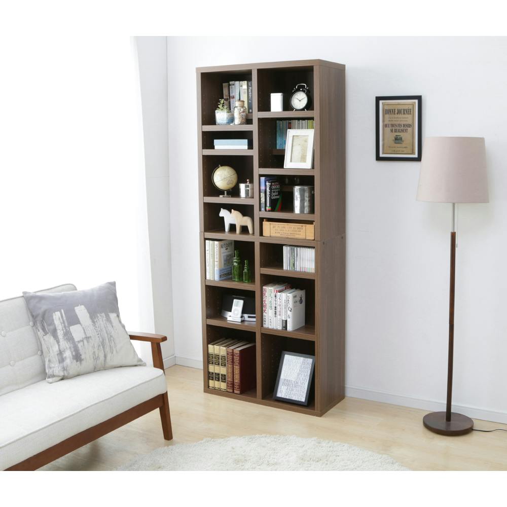 省スペースに大量の本を収納することができるブックシェルフです。前後の棚板を同じ高さや段違いに設置することでオリジナルの本棚がつくれます。 ●耐荷重(約):全体120kg、天板・底板10kg、固定棚板10kg、可動棚板1枚あたり5kg ●棚内寸(約):320×293×870mm ●棚板サイズ(約):319×145mm ●棚板枚数:可動20枚、固定1枚