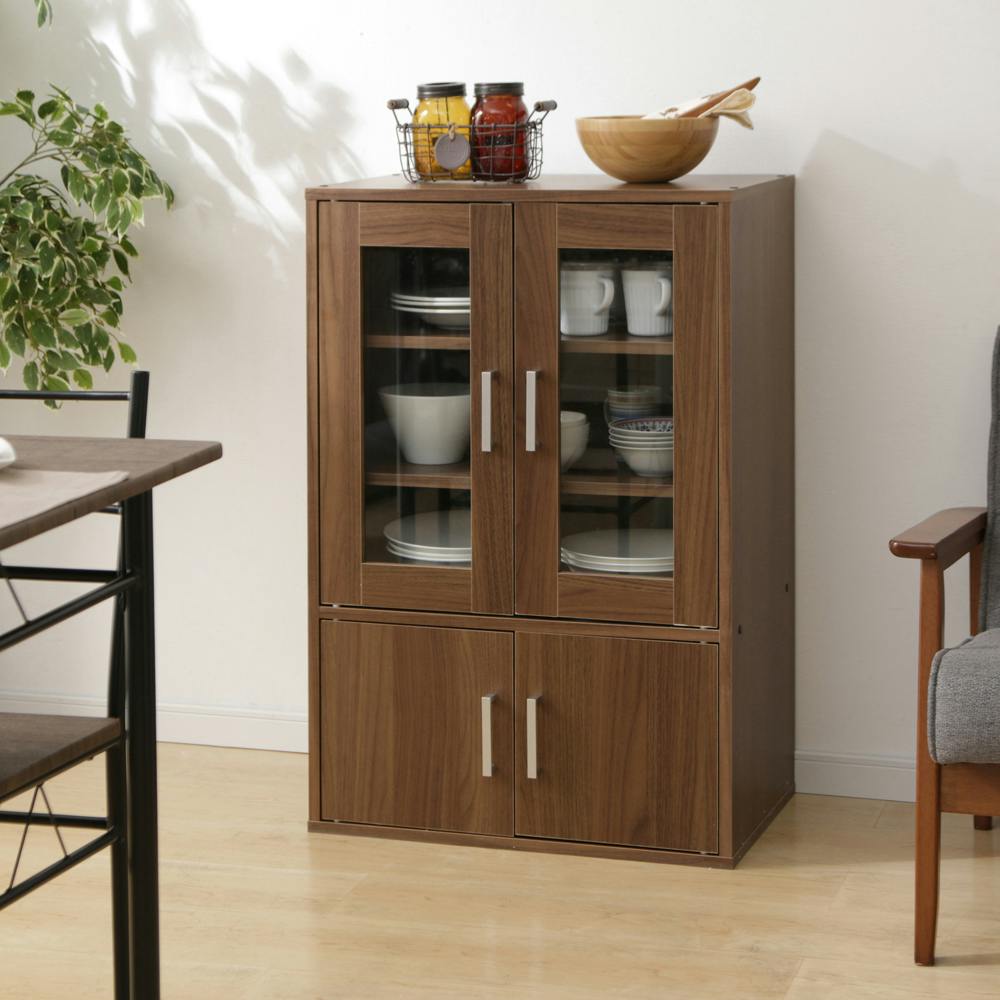シンプルなデザインで、どのお部屋の雰囲気にも合うガラスキャビネットです。キッチンでは食器棚として、リビングでは本棚や飾り棚として使用できます。 ●耐荷重(約):全体50kg、天板・底板10kg、固定棚板10kg、可動棚板1枚あたり10kg ●ガラス扉内寸(約):566×351×567mm ●扉内寸(約):566×351×284mm ●棚板サイズ(約):565×334mm ●棚板枚数:可動2枚