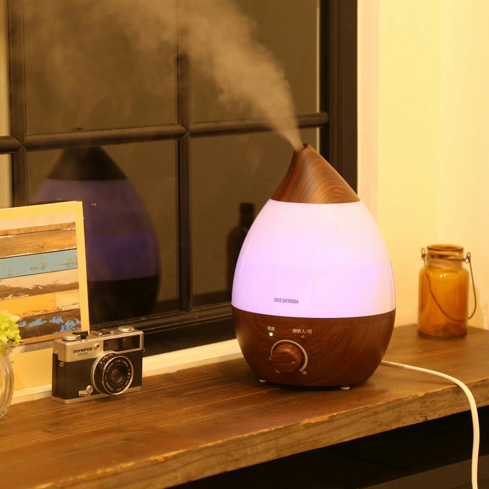 アイリスオーヤマ 超音波式加湿器 しずく型 UHM-280SM-DT ダークブラウン 喉 声 乾燥 加湿器 4967576388443【別送品】