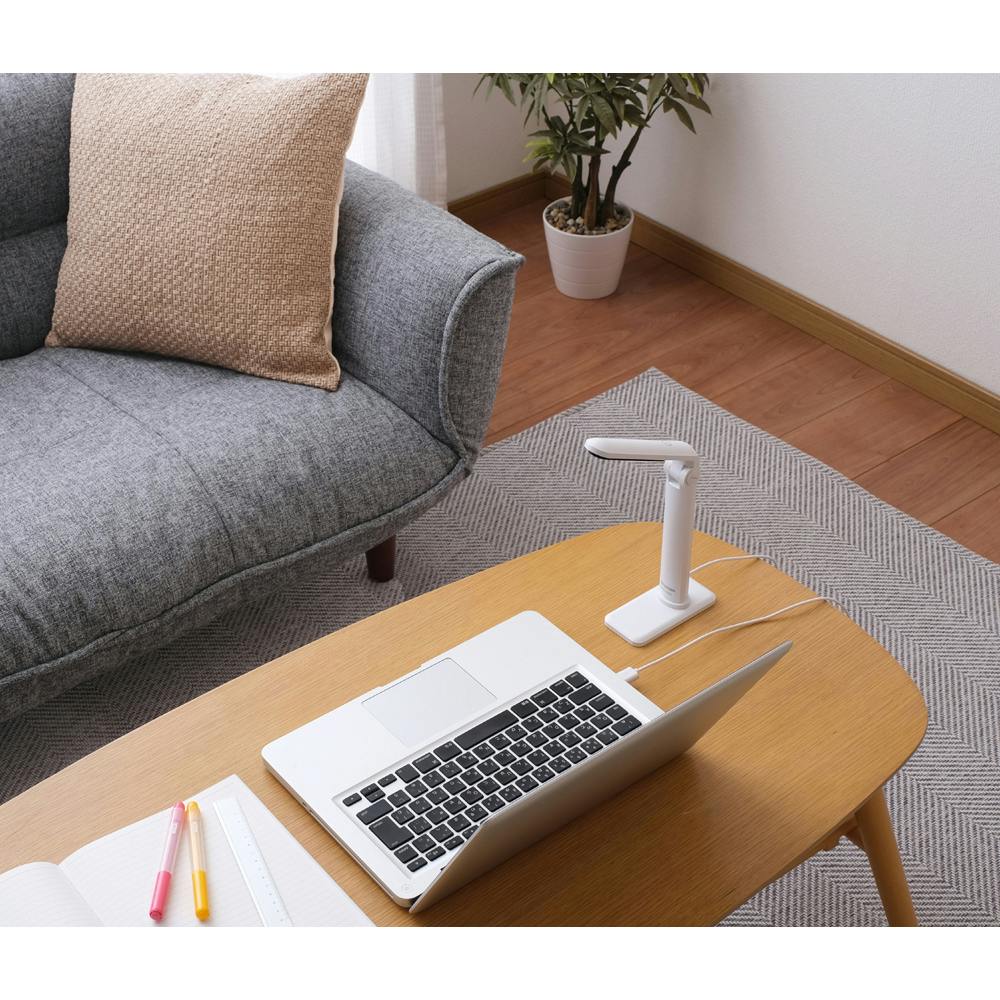 ●光色:昼白色 ●電源:AC100V(50/60Hz) ●定格消費電力:4.0W(最大点灯時) ●直下照度:2000lx ●JIS照度:一般形相当 ●調光:無段階 ●演色性:Ra85 ●USBケーブルの長さ:1.8m ●まぶしさガード採用 ●タッチスイッチ式 ●USB給電 ●折りたたみ収納可能