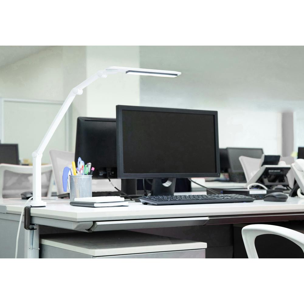 「まぶしさガード」採用で、手元は明るく、光源はまぶしくない、目にやさしいLEDデスクライトです。明るさは無段階調節で調光ができ、オフィスなどで適切な明るさをご提供します。デスクトップパソコンのサイズに合わせた高さで使用できます。クランプタイプで、取り付ける際に薄型なのでデスク上で場所をとりません。 明るさは無段階調節で調光ができ、オフィスなどで適切な明るさをご提供します。