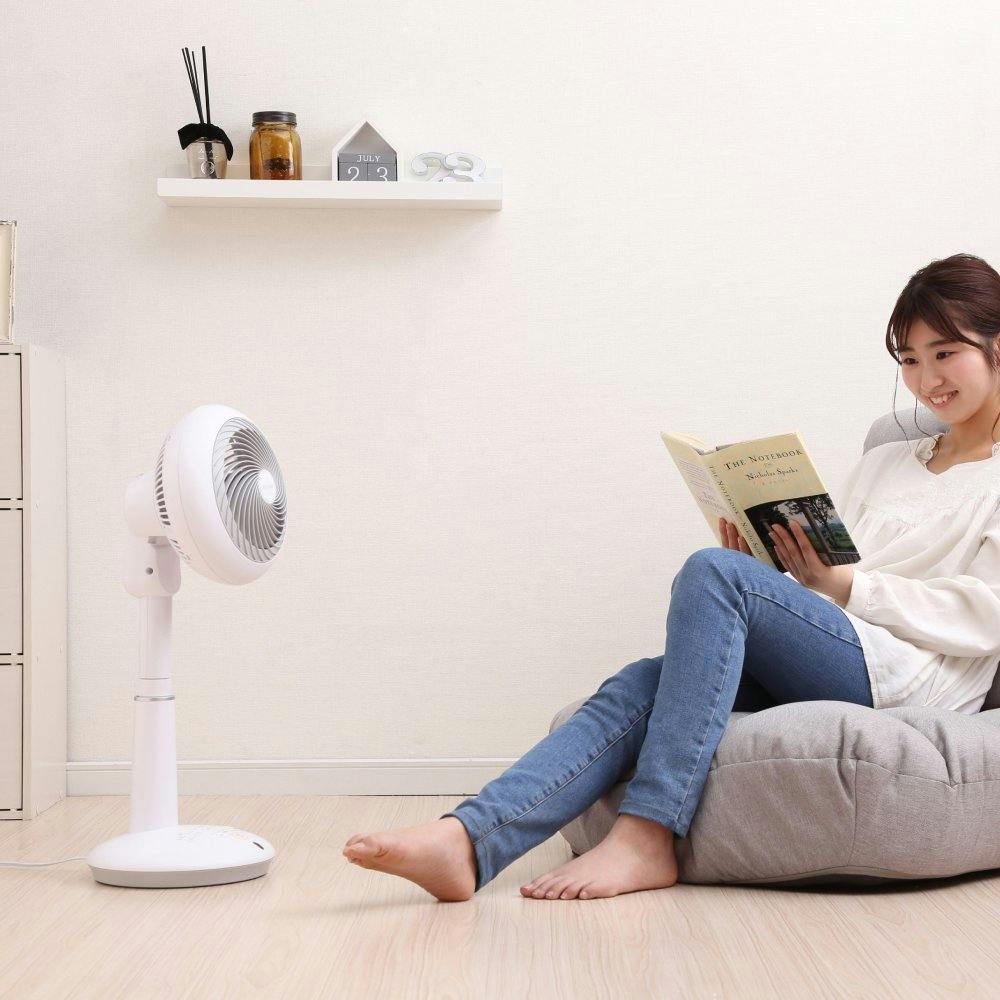 製品仕様/電源:AC100V(50/60Hz共用)、消費電力:25W、送風モード:連続・リズム風・おやすみ、風量調節:10段階、高さ調整:上下10cm 4段階調節可能、入切タイマー:2・4・8時間、羽根サイズ:直径15cm(羽根:3枚)、適応畳数:~24畳、コードの長さ:1.7m ●DCブラシレスモーター採用