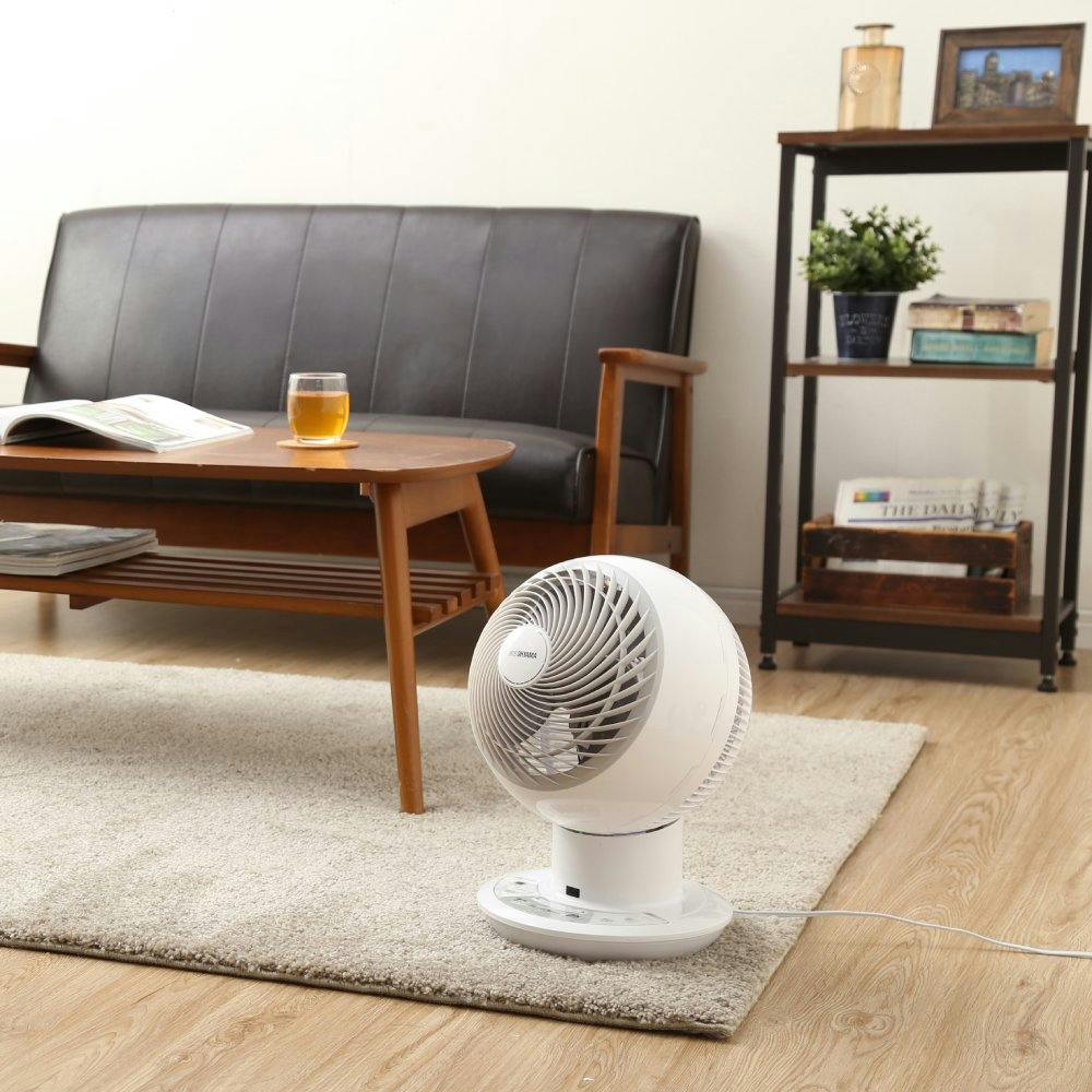 ●サーキュレーターは、室内の温度差のある空気を循環させる『空気循環機』です。空気を循環させることで部屋の上下の温度差が小さくなり、冷暖房の効率を高め電気代の節約につながります。扇風機の風が幅広く拡散し遠くまで届きにくいのに対し、サーキュレーターのスパイラルグリルより発生させた直進性の高い風は遠くまで届くので、より効果的な循環が可能です。