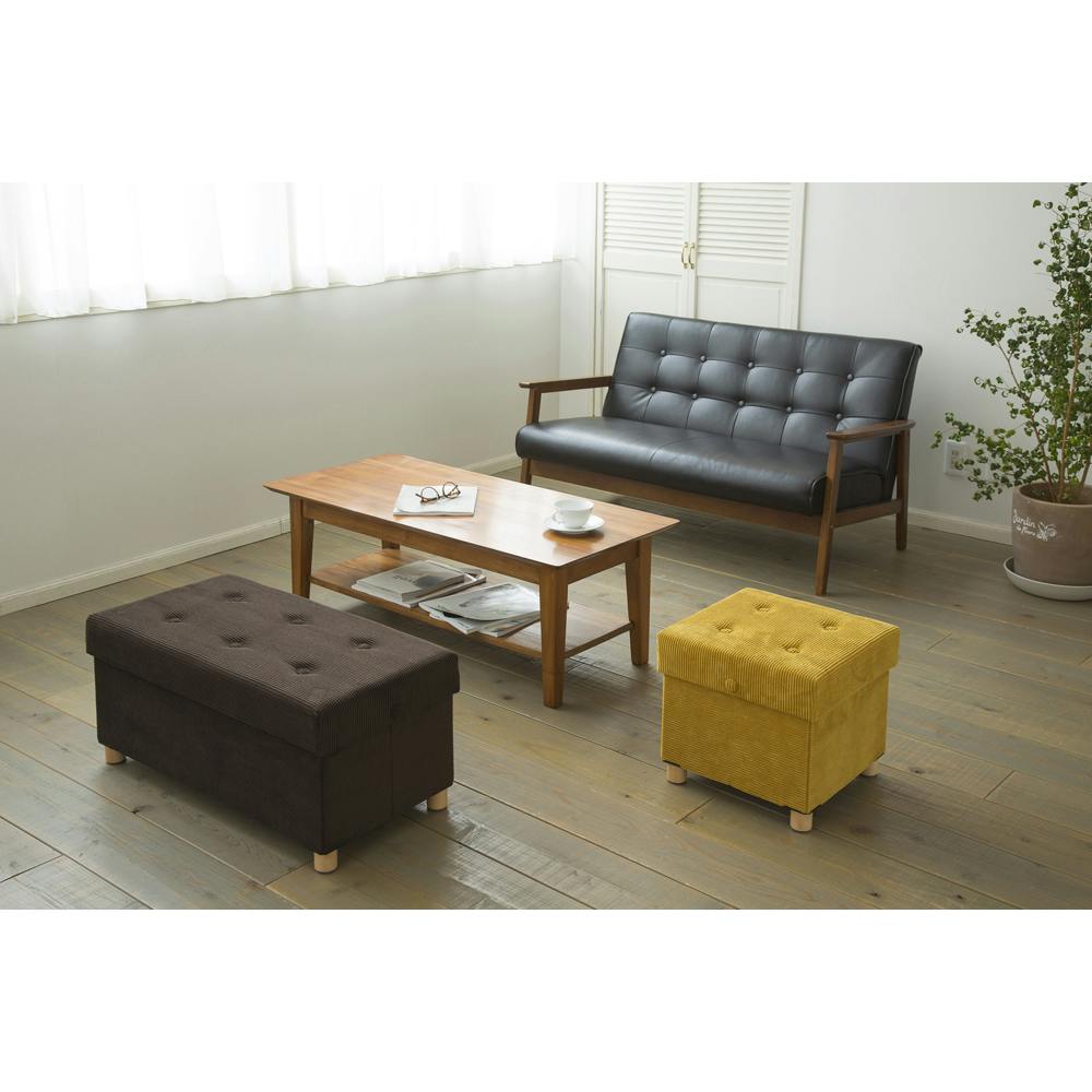 1台4役の多機能収納スツールです。イスとしての使用はもちろん、オットマンとしてもお使いいただけます。大きい物も小さい物も収納可能です。座面を裏返すと、簡易テーブルになり、ゴムで座面を固定することで、安定してお使いいただけます。脚付きデザインで、フローリングの部屋や木製家具とも相性抜群です。コンパクトに折りたためます。小物の収納に便利なインナーBOXが2個付いています。ソファやチェアで人気のコーデュロイ生地を採用しています。