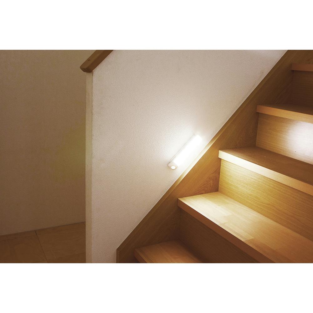 センサーが人の動きを感知して自動的に点灯する乾電池式LED室内センサーライトウォールタイプです。人が近づくとふわっと光るので階段・廊下・物置・玄関・クローゼットなどの明かり取りに最適です。乾電池式で電源や配線が不要なので、いろいろな場所に簡単に設置できます。2段階の明るさ切り替えができます(Hi/Lo)。 人が近づくとふわっと光るので階段・廊下・物置・玄関・クローゼットなどの明かり取りに最適です。
