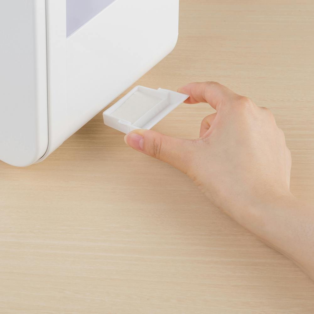 コンパクトでインテリアにもマッチするデザイン性の高いハイブリッド式加湿器です。湿度・温度が見えるデジタル表示。静電のタッチパネルで楽に操作ができます。離れたところから操作ができるリモコン付です。アロマトレーにお好みのアロマオイル(市販)を滴下すると、アロマの香りが広がります。湿度・温度が見えるデジタル表示。静電のタッチパネルで楽に操作ができます。