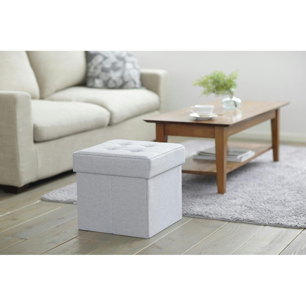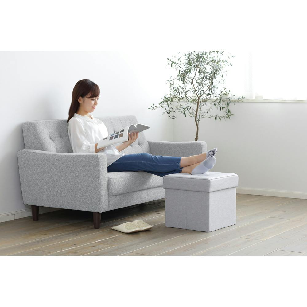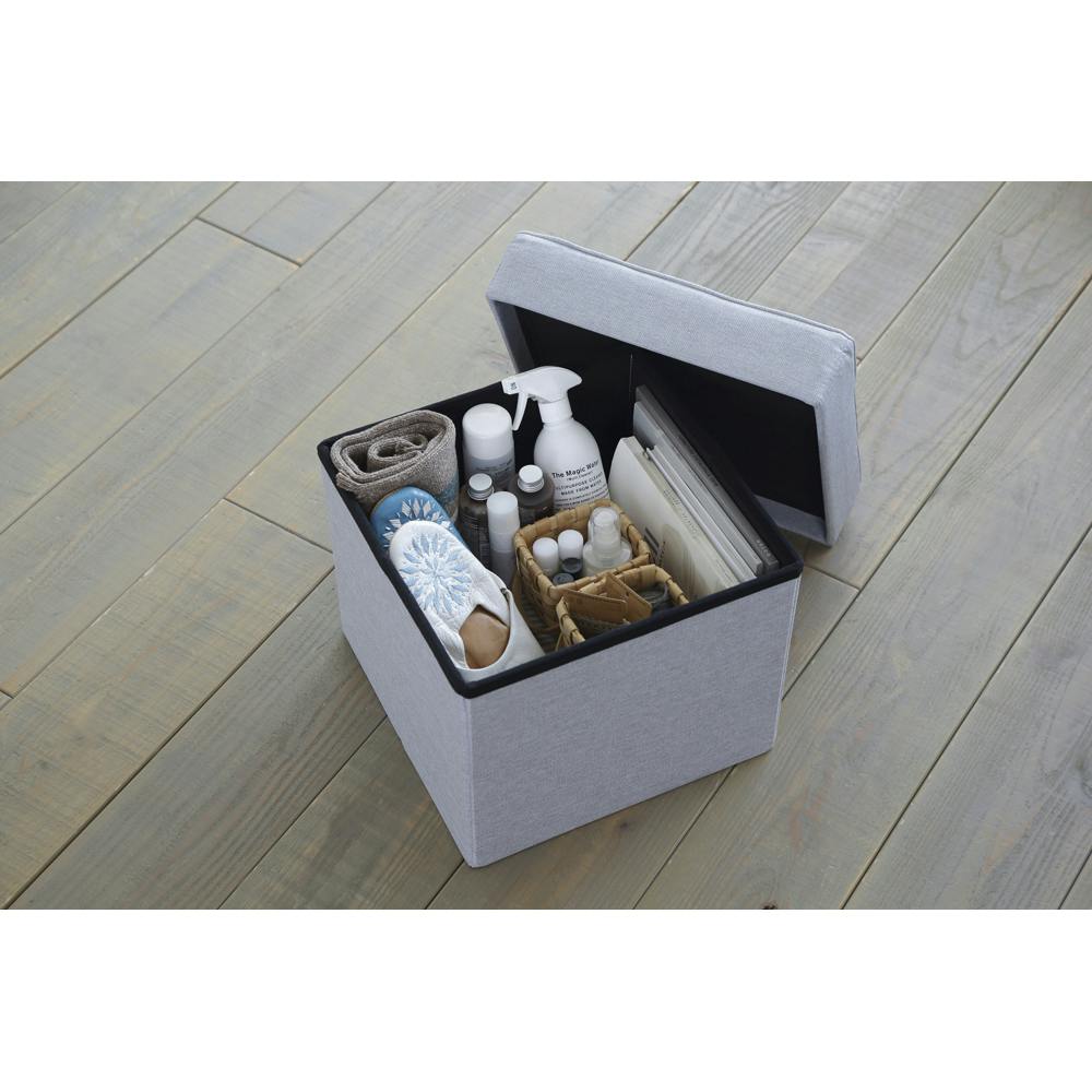 座る、小物収納、オットマンとしても使える多機能折りたたみスツールです。リビング、寝室、子供部屋など様々なシーンで活躍します。使用しない時は、コンパクトに折りたむことが可能です。 ●商品内寸(約):340×340×290mm ●折りたたみ時サイズ(約):380×380×100mm ●耐荷重(約):80kg