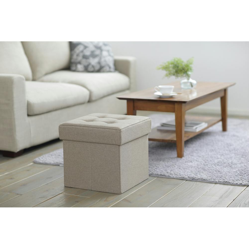 座る、小物収納、オットマンとしても使える多機能折りたたみスツールです。リビング、寝室、子供部屋など様々なシーンで活躍します。使用しない時は、コンパクトに折りたむことが可能です。 ●商品内寸(約):340×340×290mm ●折りたたみ時サイズ(約):380×380×100mm ●耐荷重(約):80kg