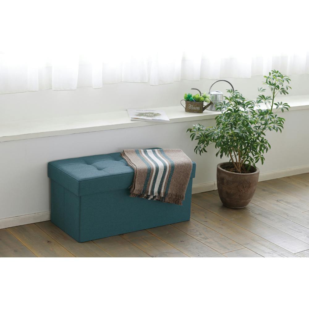 座る、小物収納、オットマンとしても使える多機能折りたたみスツールです。リビング、寝室、子供部屋など様々なシーンで活躍します。使用しない時は、コンパクトに折りたむことが可能です。 ●商品内寸(約):722×340×290mm ●折りたたみ時サイズ(約):760×380×100mm ●耐荷重(約):160kg