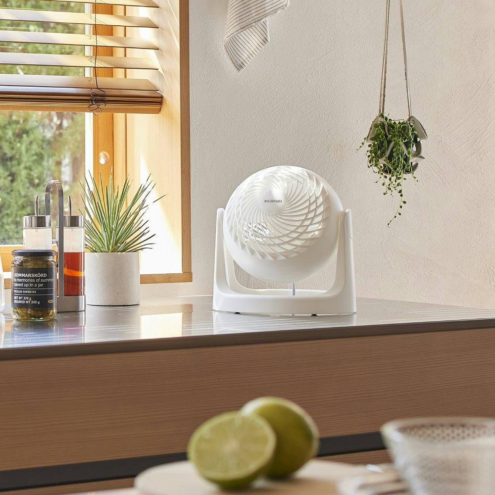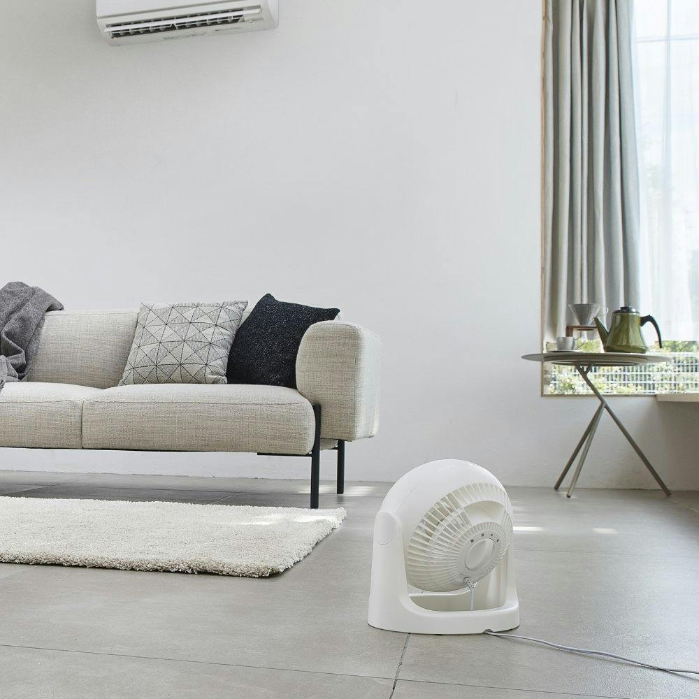 コンパクトなのにパワフルで大風量のコンパクトサーキュレーターです。これまでのH型サーキュレーターよりデザイン性・質感がUP!!サーキュレーター部分が丸いフォルムで、圧迫感のないコンパクトサイズになりました。手動で縦に360°風向き調節が可能です。ガードのすきまが小さくなったので、指がはいりにくく、より安全に使用できます。エアコンと併用して夏は冷気を部屋全体へ、冬は暖かい空気を足元へ循環し一年中使えます。