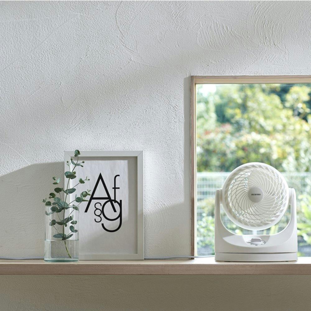 エアコンと併用して夏は冷気を部屋全体へ、冬は暖かい空気を足元へ循環し一年中使えます。室内の空気の循環以外に、洗濯物の乾燥、部屋の換気、隣室への空気の送り込みなどに使うこともできます。 これまでのH型サーキュレーターよりデザイン性・質感がUP!!サーキュレーター部分が丸いフォルムで、圧迫感のないコンパクトサイズになりました。