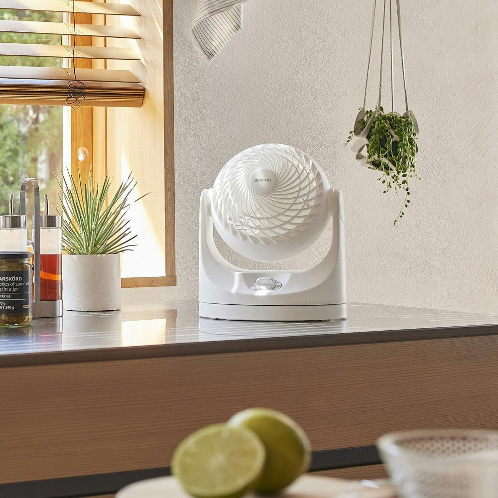 コンパクトなのにパワフルで大風量のコンパクトサーキュレーターです。これまでのH型サーキュレーターよりデザイン性・質感がUP!!サーキュレーター部分が丸いフォルムで、圧迫感のないコンパクトサイズになりました。ガードのすきまが小さくなったので、指がはいりにくく、より安全に使用できます。自動で左右に首を振る首振り機能付きです。手動で縦方向の角度調整ができます。上約90度~下約22.5度まで6段階の調整が可能です。