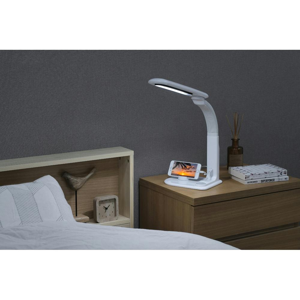 ●光色:昼白色●使用光源:LED●定格電源/本体定格入力電圧:AC100V(50/60Hz)/ DC24V●定格消費電力:11.0 W(電源アダプターを含む)●直下照度:2200lx●JIS照度 AA形準拠●調光:無段階●演色性:Ra85●USB出力:DC5V 1.2A●電源コードの長さ:1.8m●保証期間:お買い上げ日より1年間●まぶしさガード採用●USB給電付き●スマホスタンド付き●右利き・左利き両対応台座