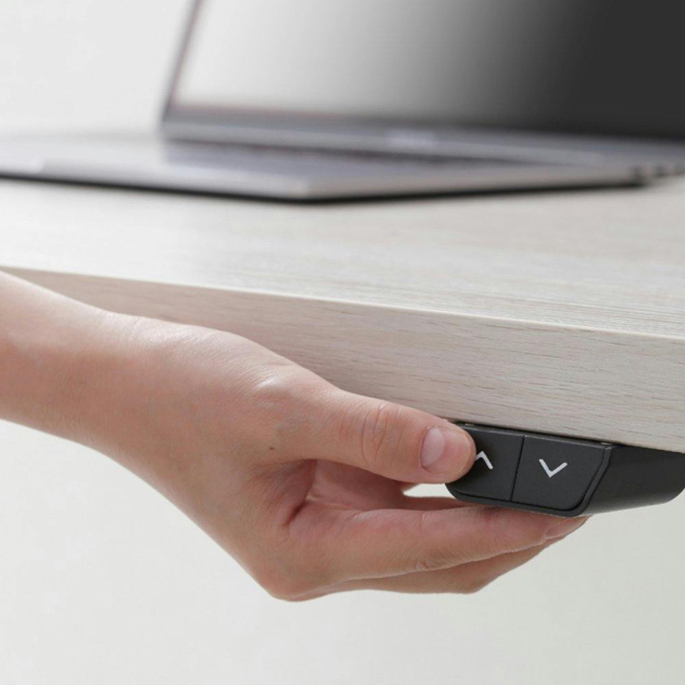 ボタンひとつで思い通りの高さに調節可能な、電動昇降テーブルです。無段階調節が可能、使用シーンや一人一人の体格に合った高さを見つけることができます。電動式なので一人でも簡単に高さを調節できます。デスク上に重いものを乗せたままでも昇降可能です。デスクから延びるコードをまとめられる、コード収納トレー付です。