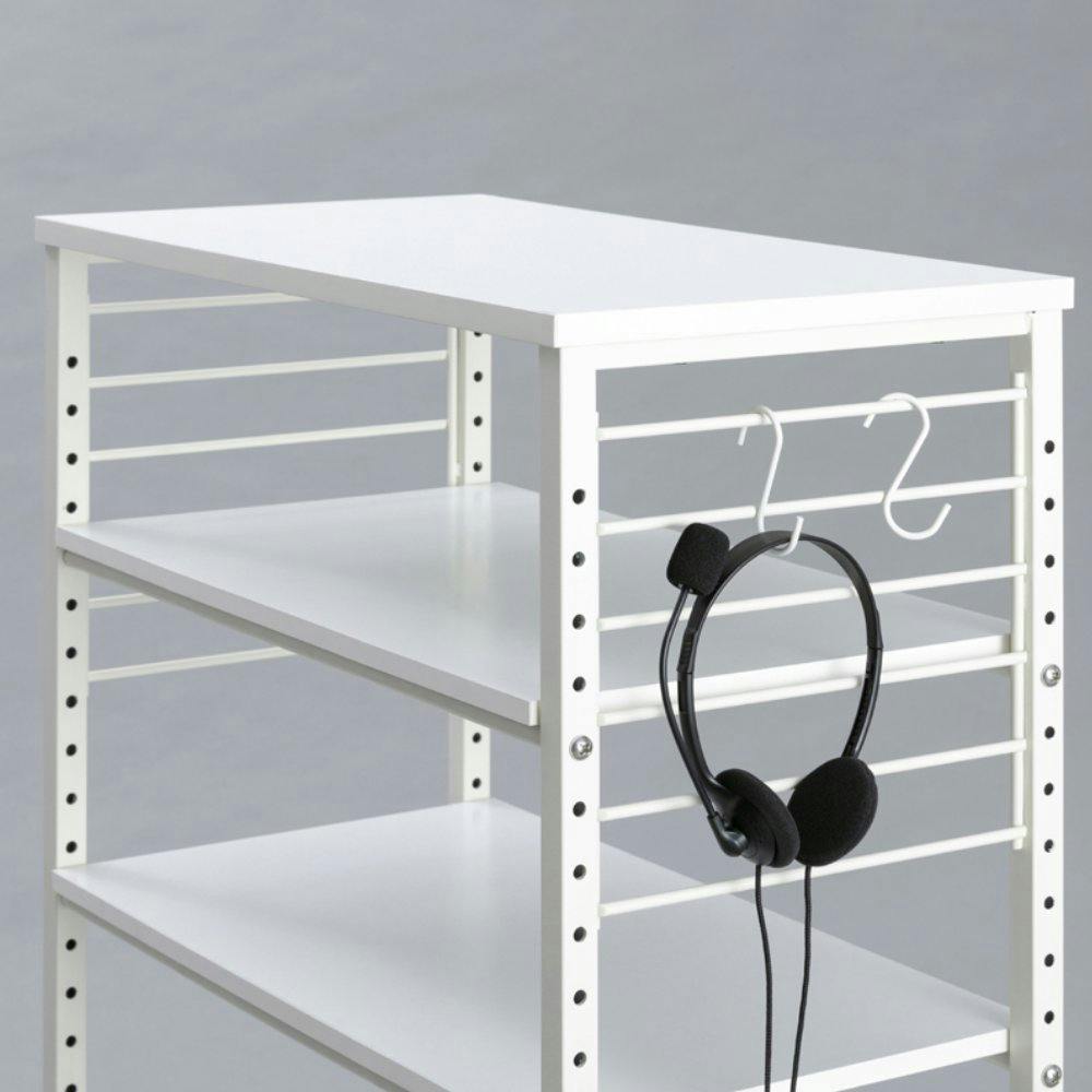 ●耐荷重:天板:5kgf、棚板:下段 15kgf、中段・上段 5kgf、S字フック:2kgf(1個あたり) ●棚板可動数:棚板3枚可動 30mmごと 25段階(可動穴数) ●付属パーツ:S字フック
