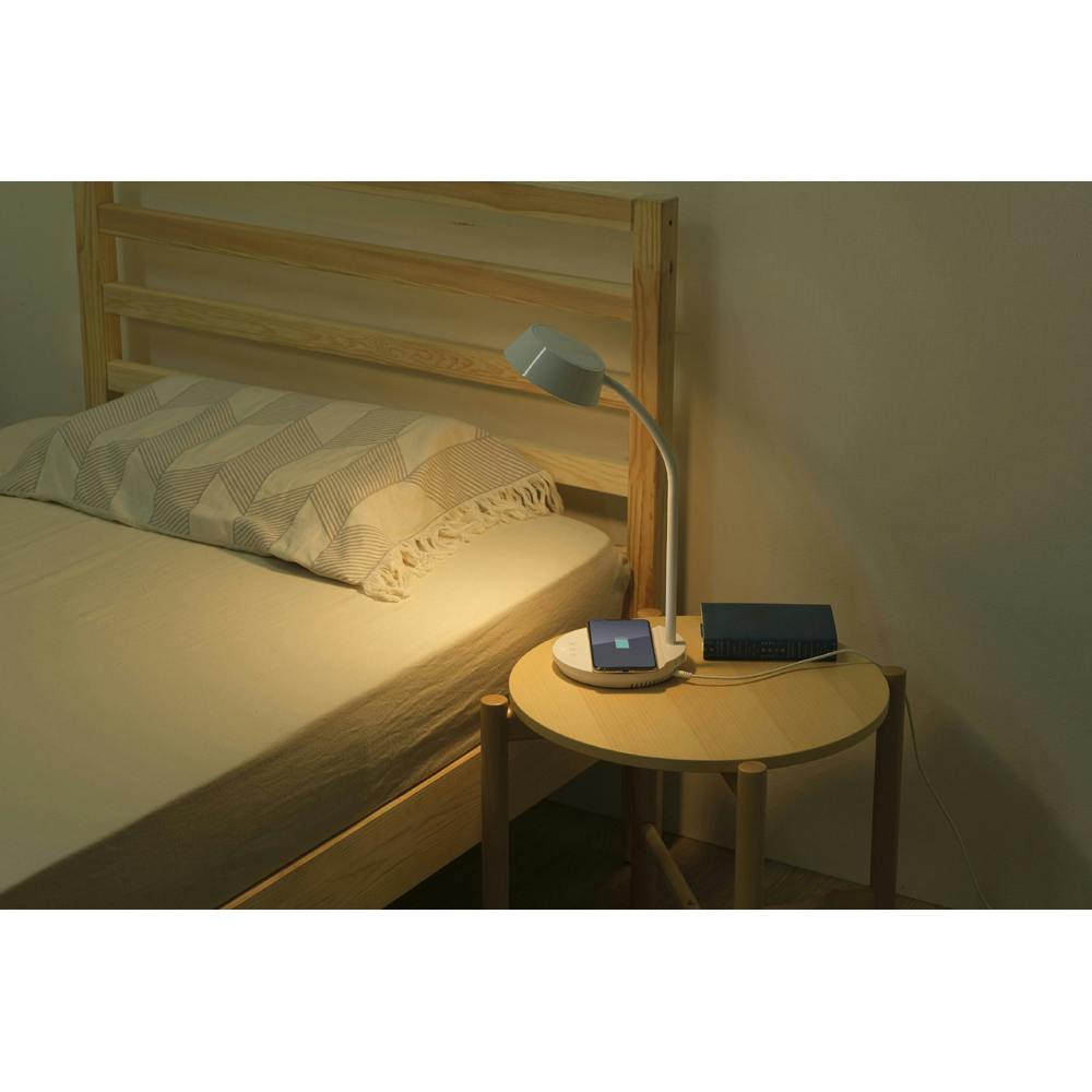 Qi※ワイヤレス充電機能搭載のLEDデスクライトです。※Qiとは・・・WPC(非接触充電規格の策定、普及を目的として設立された団体)が策定したワイヤレス給電の国際標準規格。勉強やテレワークの際に、スマホを置くだけで簡単に充電できます。USB給電ポート付きでQiワイヤレス充電に対応できないスマホでも充電ができます。シンプルなデザインで、どんなデスクにもピッタリです。使用シーンに合わせて、調光無段階、調色3段階調節が可能です。勉強やテレワークの際に、スマホを置くだけで簡単に充電できます。