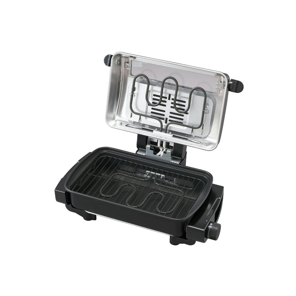 ●電源:AC100V(50/60Hz共用)、 ●消費電力:1100W、●タイマー:30分(電源スイッチ兼用)、 ●焼き網サイズ:W345×D215mm、 ●プレートサイズ:W344×D199mm、 ●コードの長さ:約1.5m