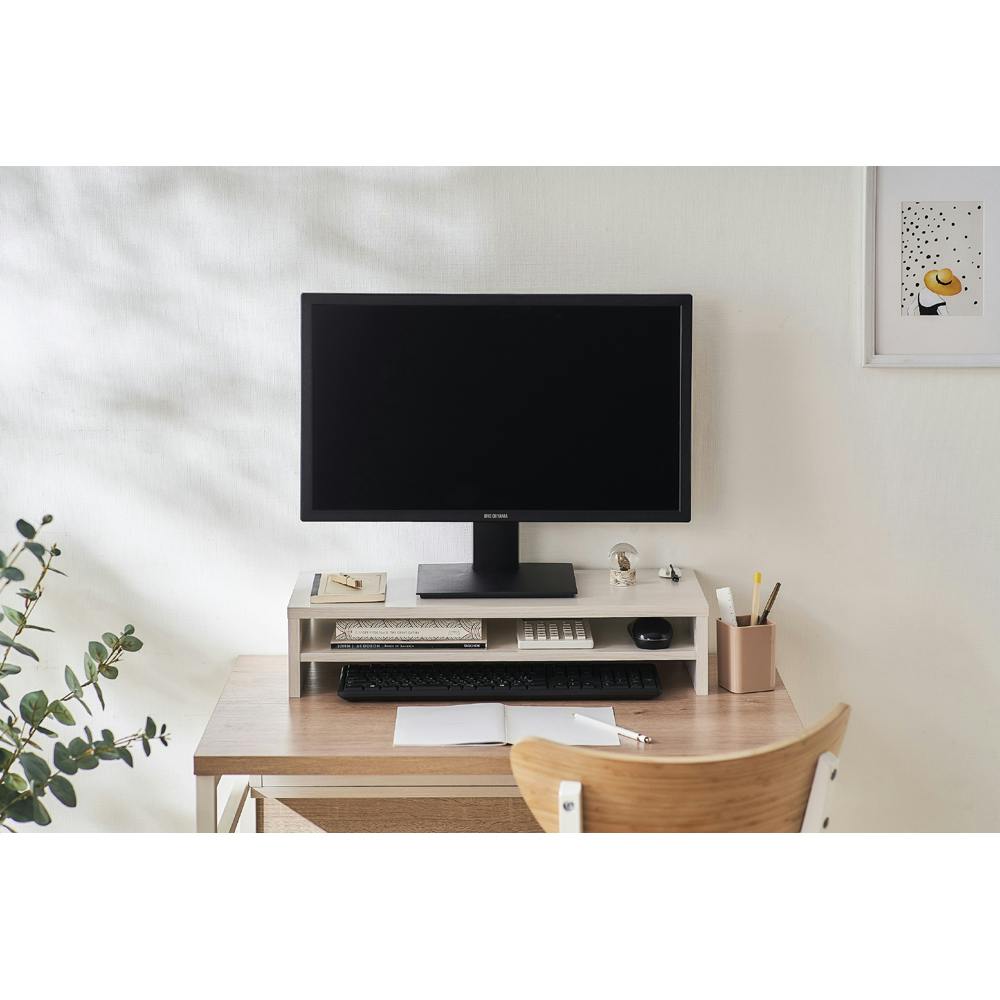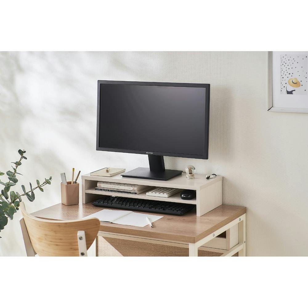 アイリスオーヤマ モニター台 棚板付き MNS-590T-OW オフホワイト 設置 ディスプレイ用品 4967576559867【別送品】