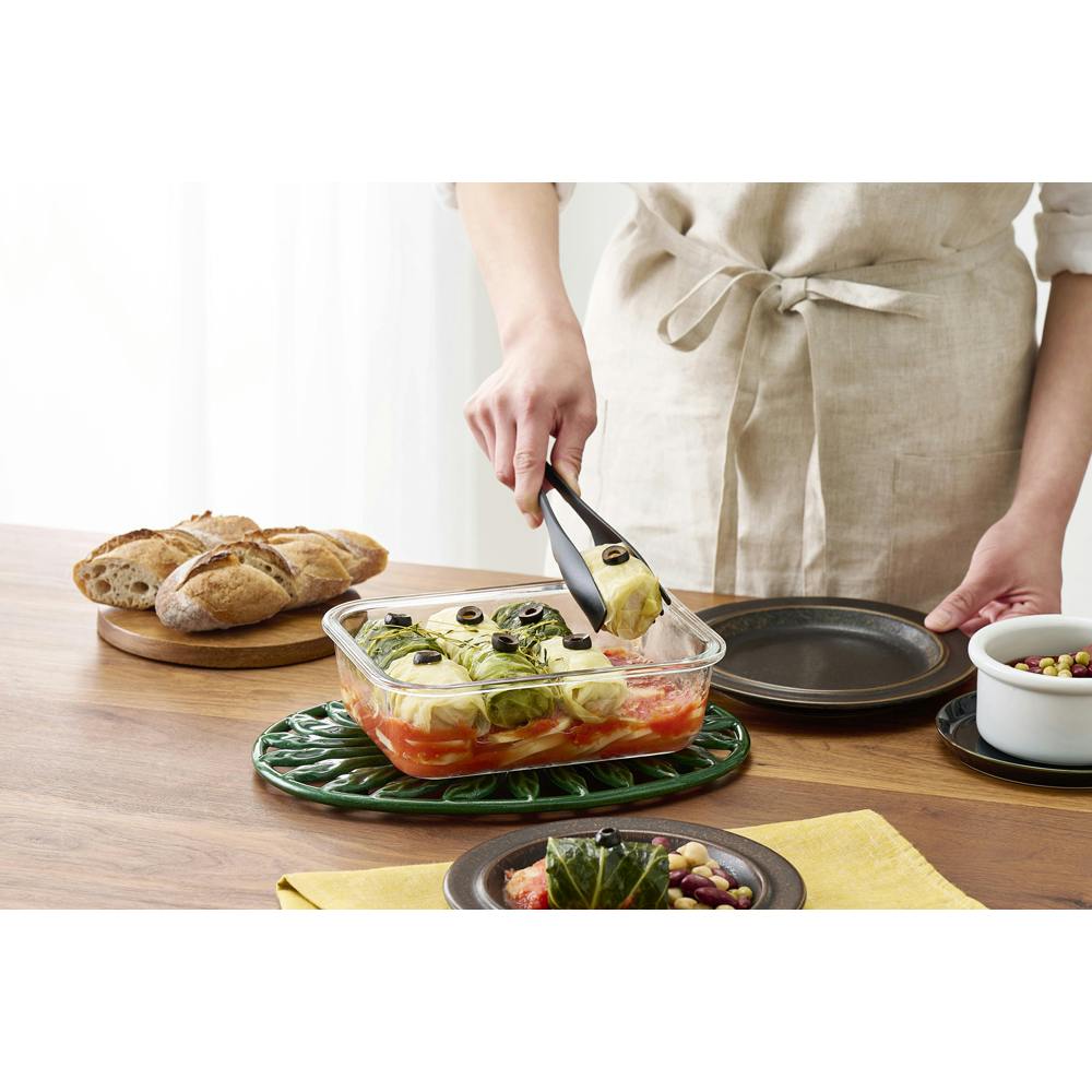 電子レンジやオーブンで使用できる耐熱ガラス容器です。作り置きの保存やそのまま食卓へお皿代わりに並べたり、スイーツ作りなど様々な用途で活躍します。フタはパッキン付きで密閉性があり、汁物もこぼれにくくなっています。色移りや匂い移りがしにくいので、酸や塩分の強い料理やカレーなども入れられます。特大サイズでカレーの保存やオーブン料理に適しています。積み重ねて置けるので冷蔵庫の中もすっきりします。中身が確認しやすいクリア容器です。油汚れも落ちやすく、洗うのがラクです。食洗機対応です。