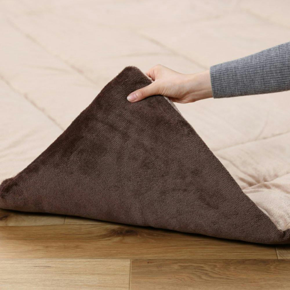 ふんわり柔らかなソフトベロア素材のリバーシブルカラーのこたつ掛け布団です。長方形の定番サイズです。吸湿発熱機能の生地を使用しています。触れたところからじんわりとあたたまります。蓄熱綿を使用することで、保温性を高め暖かさを持続します。表地に抗菌・防臭加工、裏地に消臭加工を施しています。洗濯可能です。 ●目付け(約):160g/平方メートル ●詰めもの重量(約):1.3kg ●対応こたつサイズ(約):80~120×60~80cm