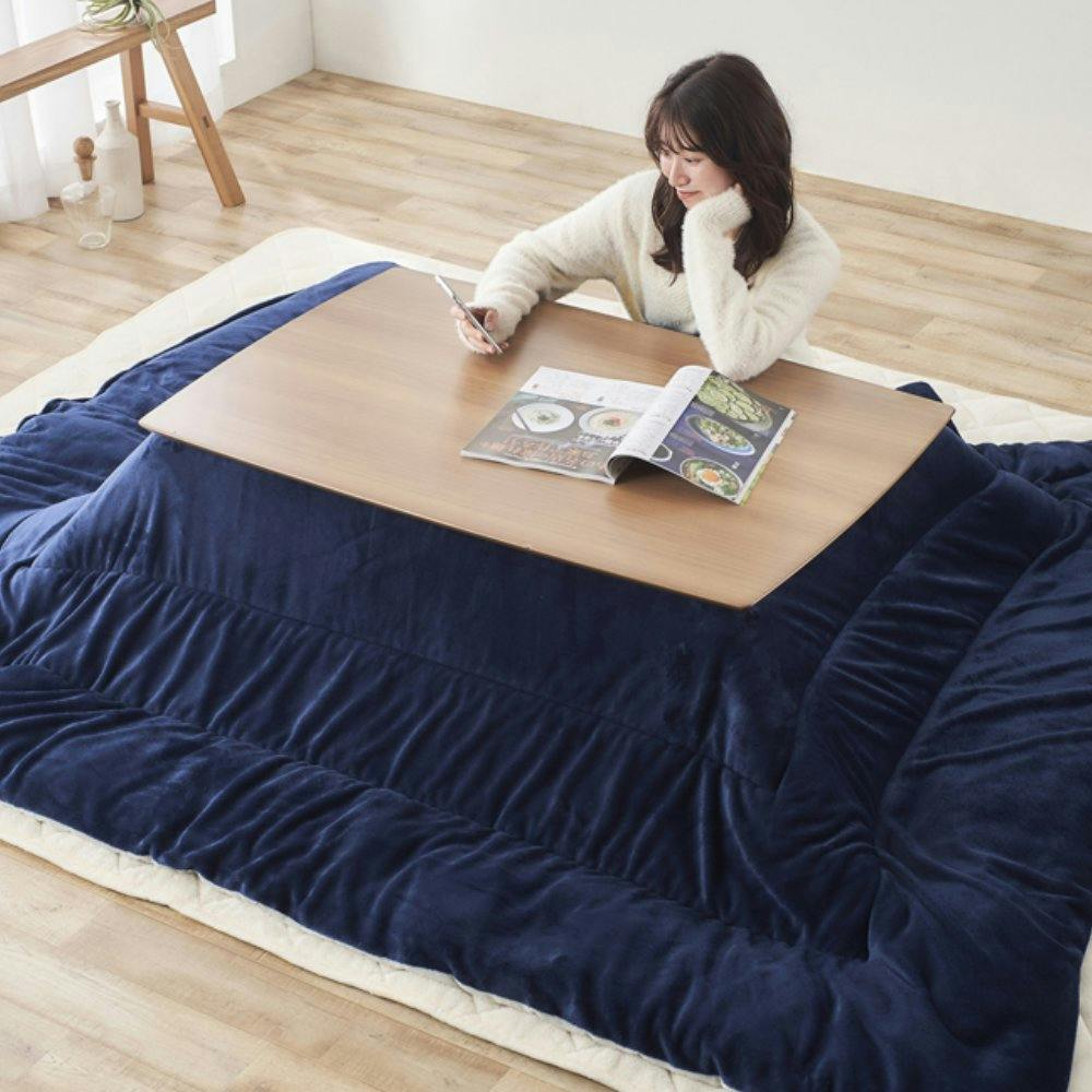 ふんわり柔らかなソフトベロア素材のリバーシブルカラーのこたつ掛け布団です。長方形の定番サイズです。吸湿発熱機能の生地を使用しています。触れたところからじんわりとあたたまります。蓄熱綿を使用することで、保温性を高め暖かさを持続します。表地に抗菌・防臭加工、裏地に消臭加工を施しています。洗濯可能です。 ●目付け(約):160g/平方メートル ●詰めもの重量(約):1.3kg ●対応こたつサイズ(約):80~120×60~80cm