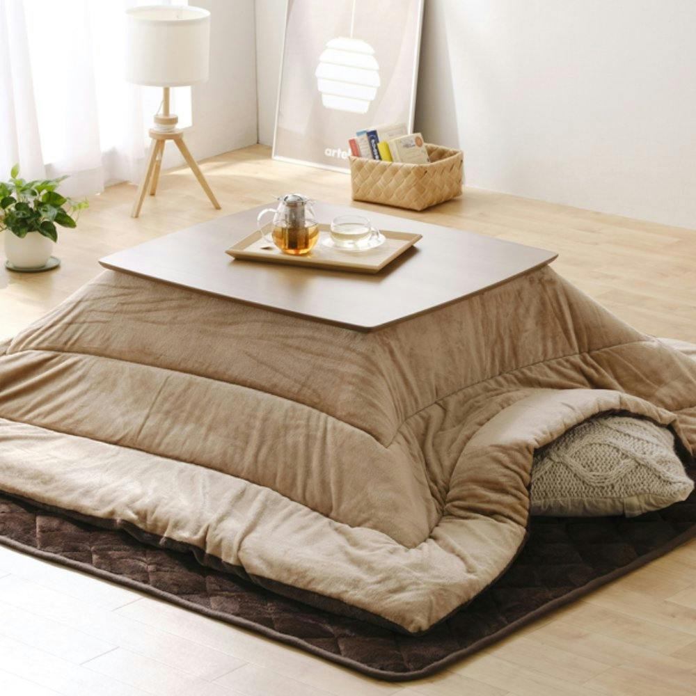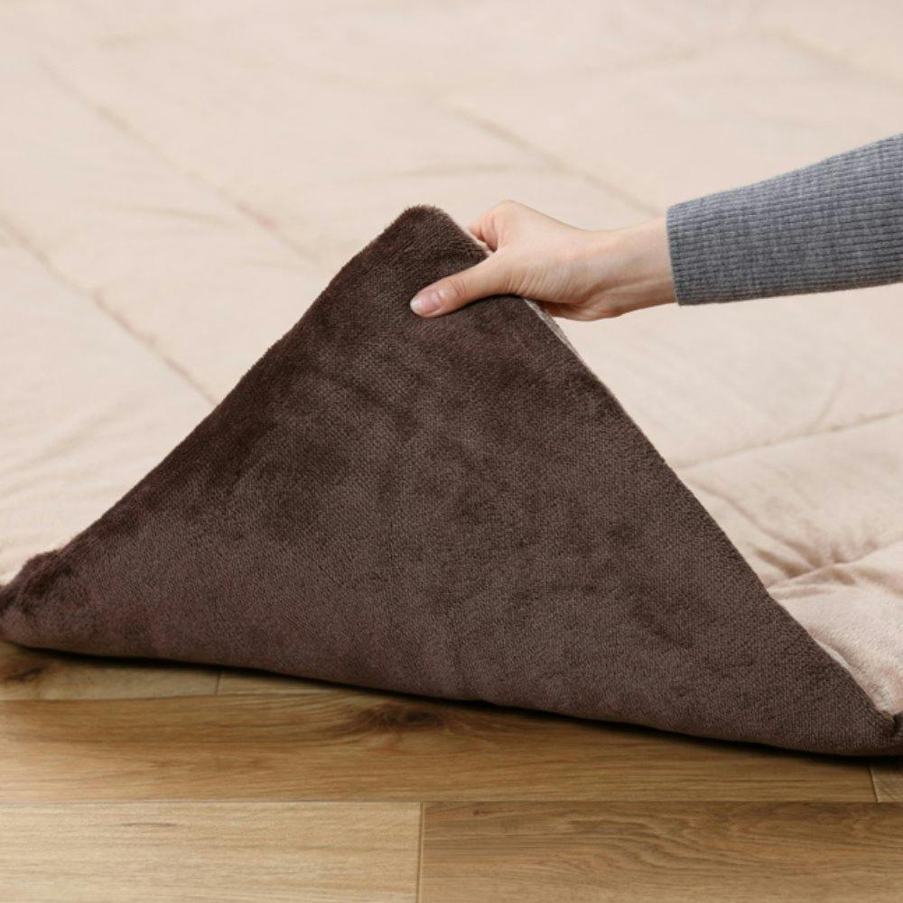 ふんわり柔らかなソフトベロア素材のリバーシブルカラーのこたつ掛け布団です。正方形の定番サイズです。吸湿発熱機能の生地を使用しています。触れたところからじんわりとあたたまります。蓄熱綿を使用することで、保温性を高め暖かさを持続します。表地に抗菌・防臭加工、裏地に消臭加工を施しています。洗濯可能です。 ●目付け(約):160g/平方メートル ●詰めもの重量(約):1.0kg ●対応こたつサイズ(約):60~80×60~80cm