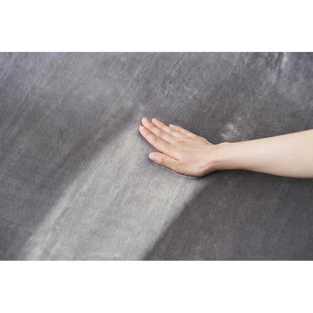低反発ウレタンを使用した2層構造で床つきを感じさせないボリュームのあるラグです。上層の低反発ウレタンがじんわり沈み込み、下層の普通ウレタンが程よい反発性で支える絶妙なもっちり触感です。ラビットファーのような、ふわっとなめらかな肌触りです。毛足の流れによって、色の変化も楽しめます。極厚ウレタンなので、防音効果もあります。お子様やペットのいいるご家庭や、集合住宅の騒音対策にもぴったりです。裏面にすべり止め加工を施しているため、ラグがずれにくく安心してお使いいただけます。ホットカーペット対応です。