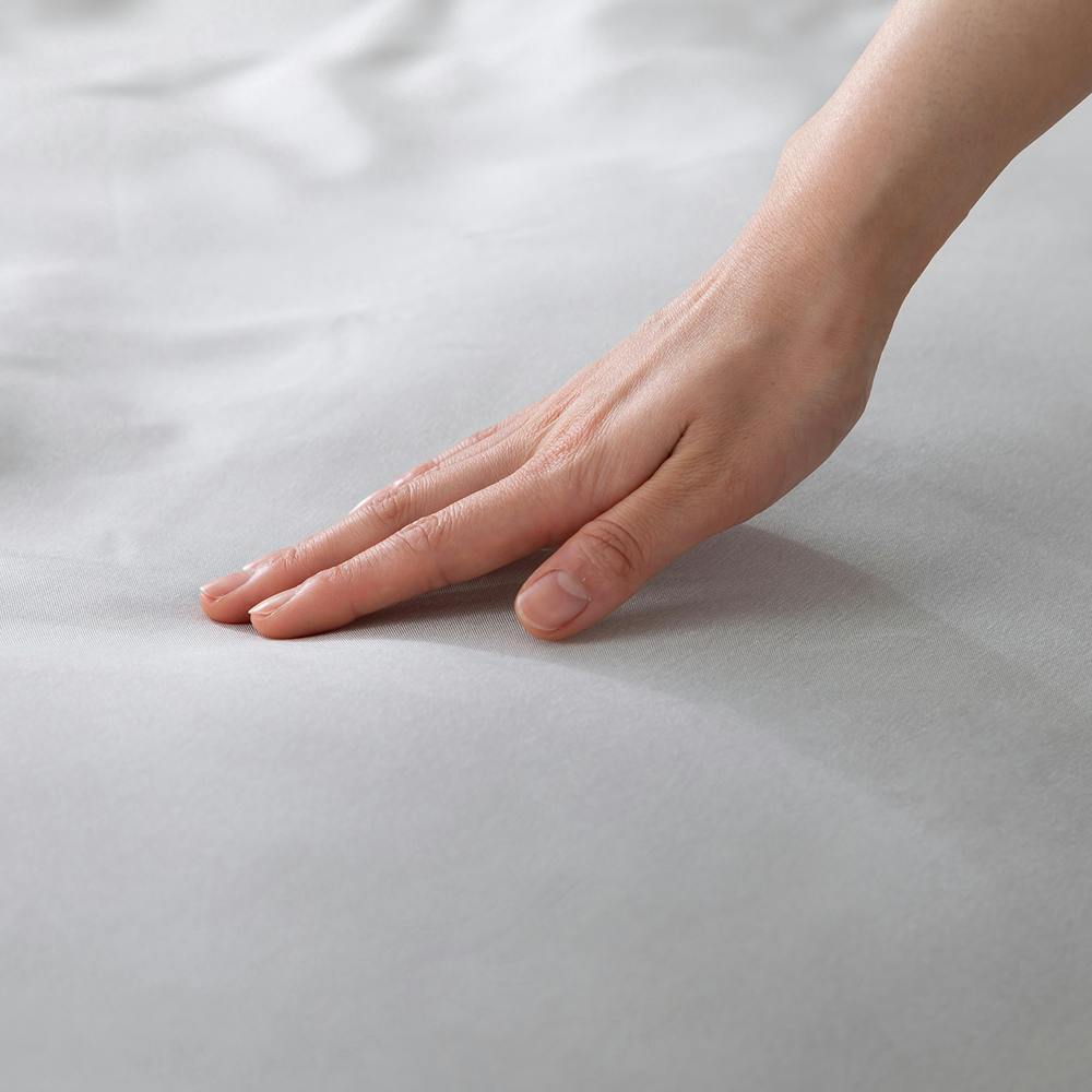 カジュアルな雰囲気のシャンブレー生地を使用したボックスシーツです。丈夫で速乾性に優れています。洗濯可能で、洗っても縮みにくく、シワになりにくいです。桃の皮の表面のような風合いを持つピーチスキン加工で、柔らかくなめらかな肌触りです。全周にゴムがついているので、カバーがずれにくくなっています。着脱が簡単に行えます。(シャンブレー生地とは、経糸と緯糸が均一に織られた平織り生地の一種です。経糸に色糸、緯糸に白糸を使用するため、白糸が表面にも交互に出てきて、霜降りのように見えるのが特徴です。)